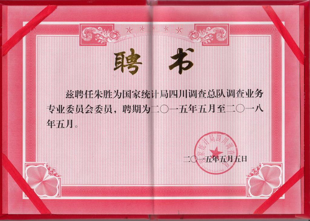 2015年5月6日,国家统计局四川调查总队调查业务专业委员会(以下简称“专委会”)成立大会在国家统计局四川调查总队召开。21名四川统计调查界专家学者受聘委员。国家统计局四川调查总队党组副书记、副总队长赵太想当选主任委员。我校Betway体育西汉姆联院长朱胜教授当选委员。