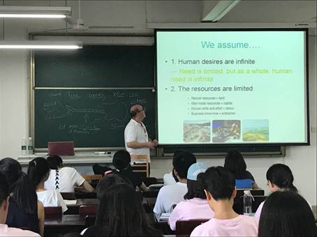 在三天的交流当中,他用生动的实例,从市场结构、经济供需、市场价格系统等方面,向同学讲授了国际经济运行环境及体系。Chad博士语言幽默风趣,举例生动,深受同学们欢迎。