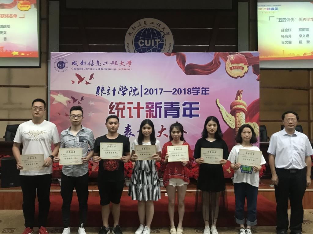 为表彰先进,树立榜样,5月30日晚,Betway体育西汉姆联在我校龙泉校区学术报告厅举行了Betway体育西汉姆联2017-2018学年“统计新青年”表彰大会。学院院长朱胜、党政办公室主任晏正春、教务办公室主任岳大波、学工办副主任兼团委书记彭波、学生党支部书记许瑞、辅导员邹红梅、获奖学生及各团学组织、团支部成员近300人参加了表彰大会。