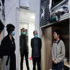 走访过程中,金书记给同学们介绍了当前龙泉驿区的疫情形势,校区管控的相关政策,详细了解了同学们目前的学习、心理、情绪状态及相关需求,并就同学们关心和疑虑的问题进行解答;金书记要求学生党员干部要充分发挥先锋带头作用,落实学校疫情防控措施和学院相关要求,提醒同学们一定要按时做好核酸检测,注意个人防护,认真上好网课,有困难及时向辅导员、任课教师等反馈;同时告知大家,同学们在后续的求学过程中有任何问题和建议都要及时反馈给辅导员老师和学院,学院就是异乡求学学子们的家。康杰和辅导员老师们也从不同角度了解了同学们当前的学习及生活状况,给予同学们细致的问候、细心的关怀、温暖的支持和积极的鼓励。