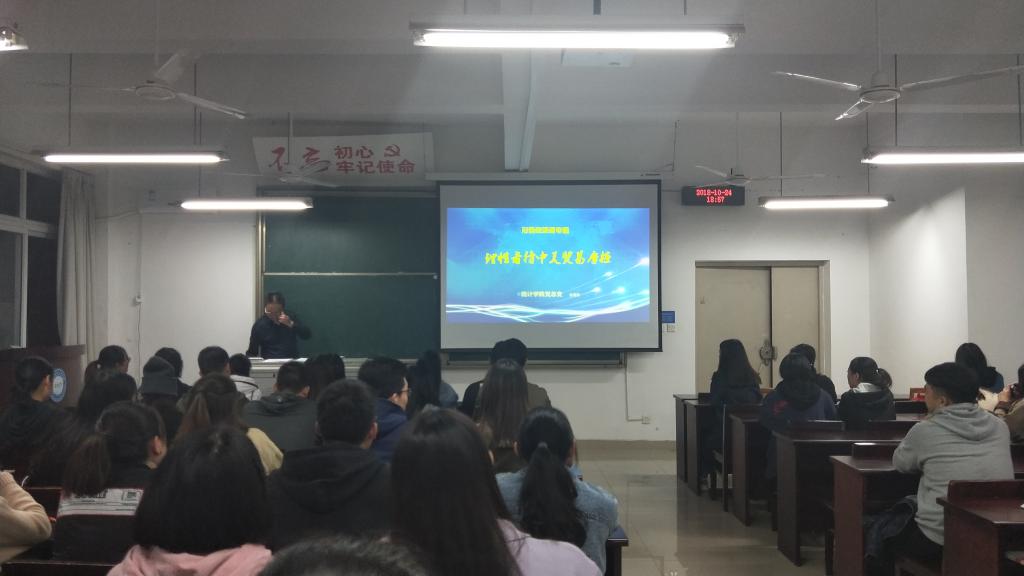 2018年10月24日晚18:30,Betway体育西汉姆联党总支书记孙克常在龙泉校区第二教学楼2409教室,为全体学生党员和学生干部作了题为“理性看待中美贸易摩擦”的形势与政策报告,报告会由学生党支部书记许瑞主持。