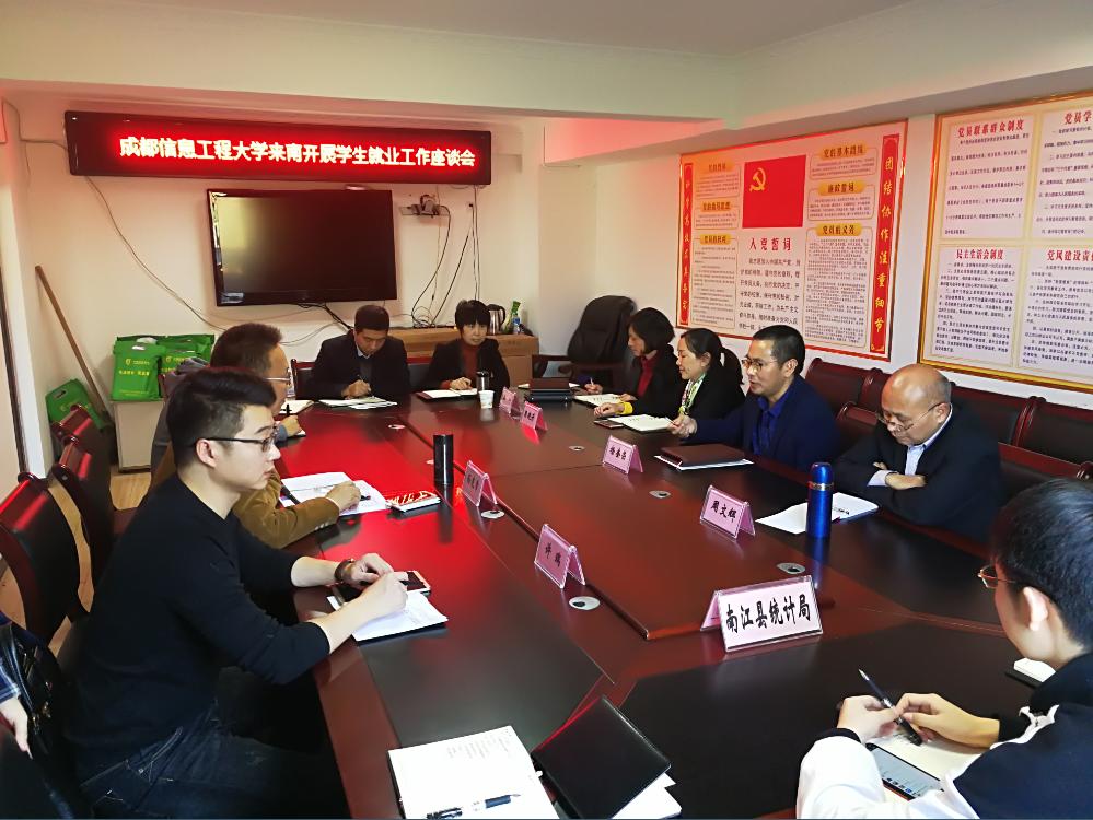 孙克常首先对统计局在引进人才的培养教育等方面表示感谢,并介绍了学校和学院的基本情况,特别是科研平台和科研团队,提出希望与南江县统计局在人才引进、科学研究、干部培训、学生实习、党建结对等方面建立长期合作机制。