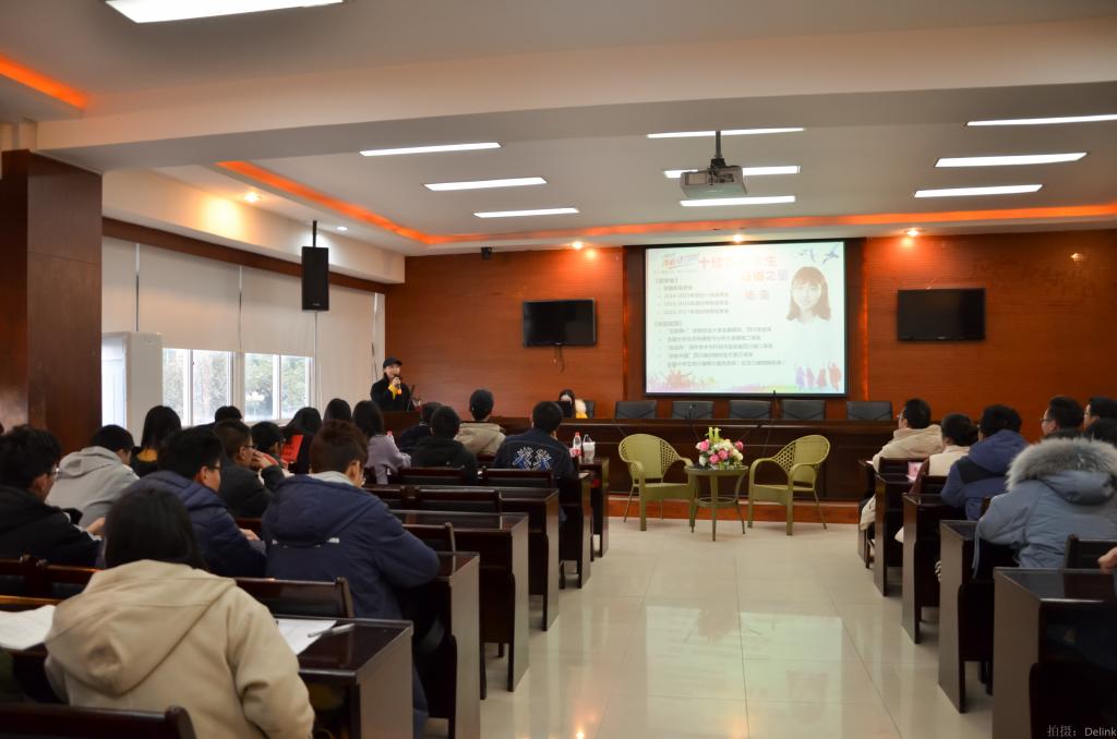 2017年度学习之星李佳蔚、志愿者之星莫睿哲、十佳班长寇斌、十佳青年及双创之星杨露依次分享了自己的心得体会并回答了在场同学的提问。他们为梦想奋斗的岁月,让同学们意识到了坚持的力量;他们不服输的生活态度,让同学们树立起了面对困难的勇气和决心;他们充实而又充满意义的大学生活鼓励大家要学会合作、学会交流、明确目标、追求卓越。