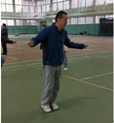 在单人跳绳比赛中,参加的每位老师都以高强度的频率坚持到最后一秒,体现出老师们坚持不懈的品德;老师们不断调试着跳绳的长度,确保自己挥舞跳绳的频率能跟上自己弹跳离地的频率,发挥出自己最好的水平。