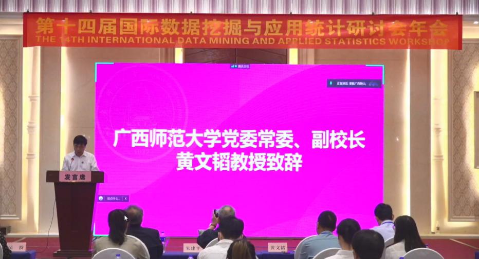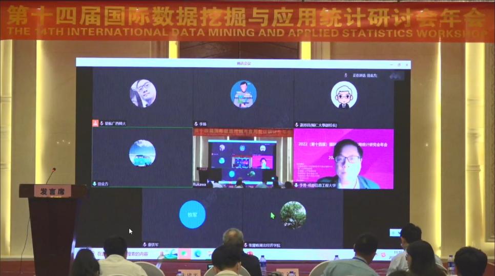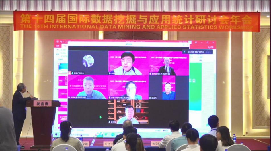 11月12日,由中国商业统计学会数据科学与商业智能分会、厦门大学管理学院、成都信息工程大学Betway体育西汉姆联、台湾辅仁大学、美国耶鲁大学生物统计系、广西师范大学联合主办,广西师范大学数学与Betway体育西汉姆联、中国政府统计研究中心、厦门大学数据挖掘研究中心、厦门市统计学会联合承办的2022(第十四届)国际数据挖掘与应用统计研讨会年会在广西桂林顺利闭幕。本次会议主题是“开拓统计应用新界面,加快数据要素新发展”。我院副院长滕磊和王臣老师出席了本次线下研讨会年会。由于疫情原因,会议采取线下结合线上直播的形式进行,其中线上直播高达2.85万余人参与。