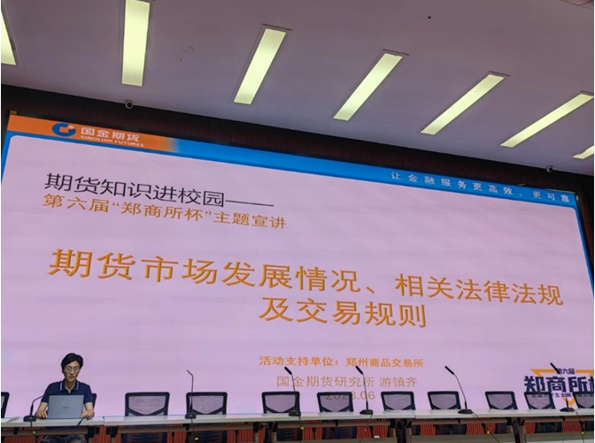 戴小红副所长生动详实地介绍了第六届“郑商所杯”全国大学生金融模拟交易大赛的背景、赛制规则以及其他相关事项,并介绍了重要的期货知识获取渠道。游镇齐分析师就期货市场发展情况、相关法律法规及交易规则进行了介绍,结合多个案例及数据从我国期货市场的发展、相关法律法规、主要期货品种以及期货交易规则等多方面展开了详细的介绍。