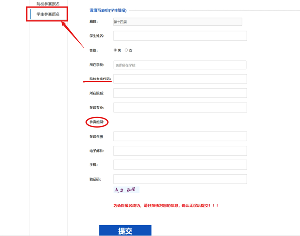 2.参赛学生务必选择好自己所在的参赛组别,否则视为无效信息。
