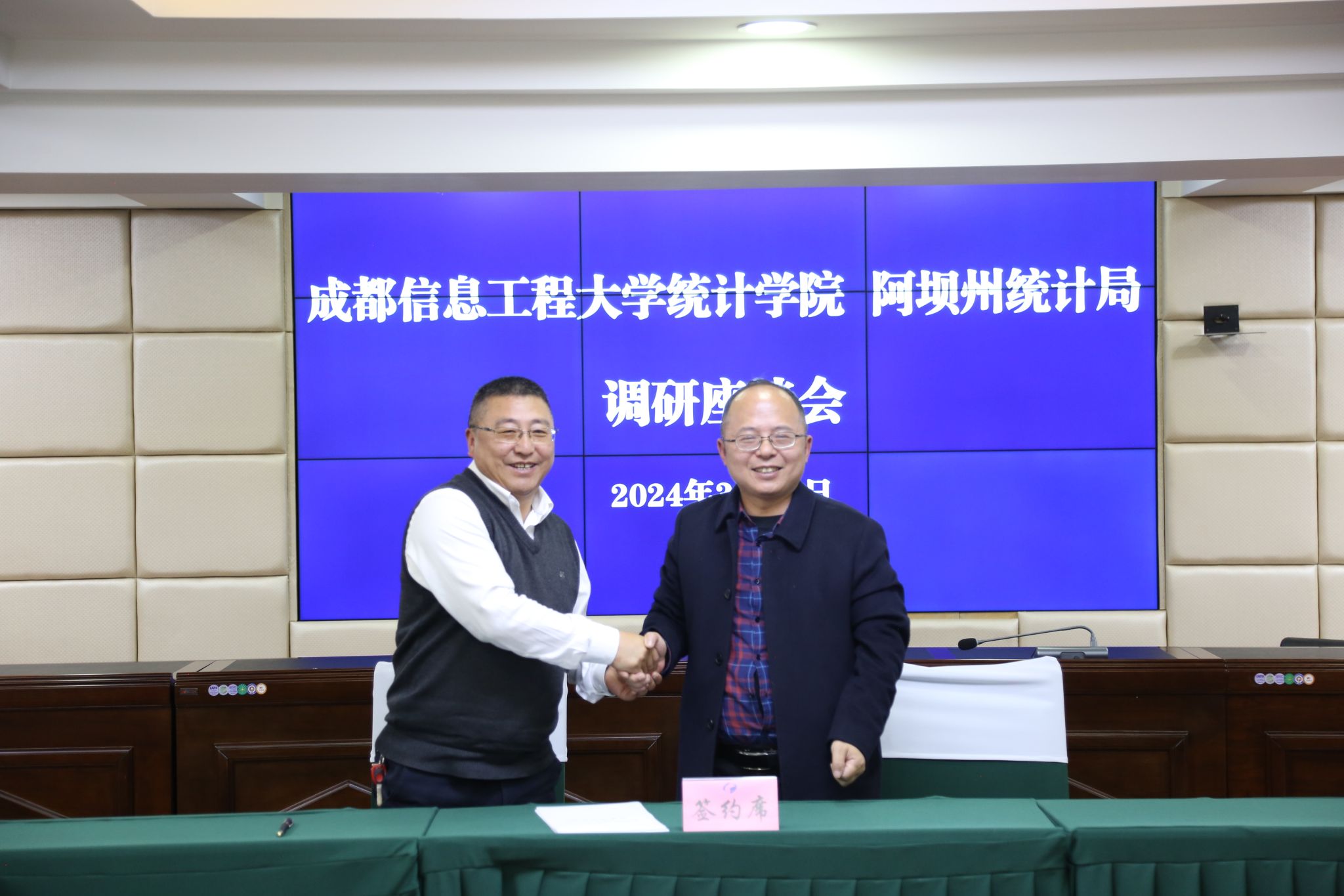 在考察调研基础之上,为了进一步深化校地优势互补和发展共赢,当日下午16:00,Betway体育西汉姆联和阿坝州统计局党建合作协议签约仪式在阿坝州统计局举行。金明一行4人,阿坝州统计局党组书记、局长东周,统计局党组成员、副局长杜春普,办公室主任克基等参加签约仪式。仪式由东周主持。