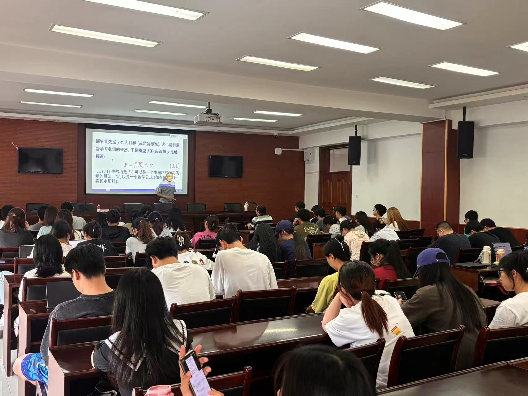 吴教授还在两场报告会过程中分享了自己在教学和研究中的成功经验,鼓励学生们积极探索统计学前沿领域和机器学习领域,为未来的职业生涯发展打下坚实的基础。吴教授的报告立意高远、思想深邃、实例丰富、内容精彩,博得现场师生的热烈掌声。