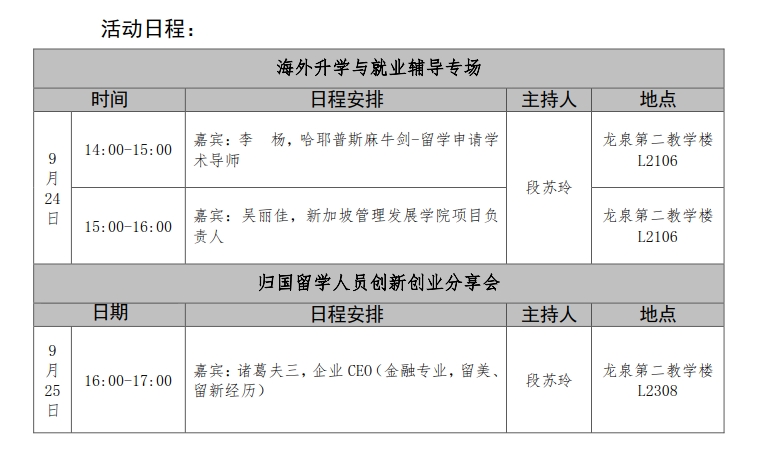 活动内容:为统计学类、经管类本科生和研究生提供海外升学与就业辅导会、归国留学人员创新创业分享会等活动