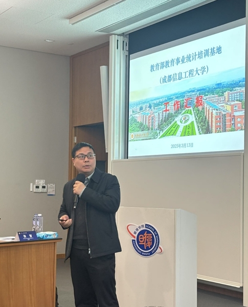 为进一步加强教育统计队伍建设,提高教育统计工作质量,3月13日上午,2025年教育部教育事业统计工作推进暨在线课程研发第一次专家研讨会在上海复旦大学举行,教育部发展规划司统计信息处处长吴延磊等相关领导出席会议并做工作指示。会上,教育部教育事业统计六大培训基地的负责人分别做了工作汇报。李勇院长代表教育部教育事业统计培训基地(成都信息工程大学)对2024年基地培训工作进行了总结,并对2025年基地培训工作的总体思路和具体安排进行了说明。