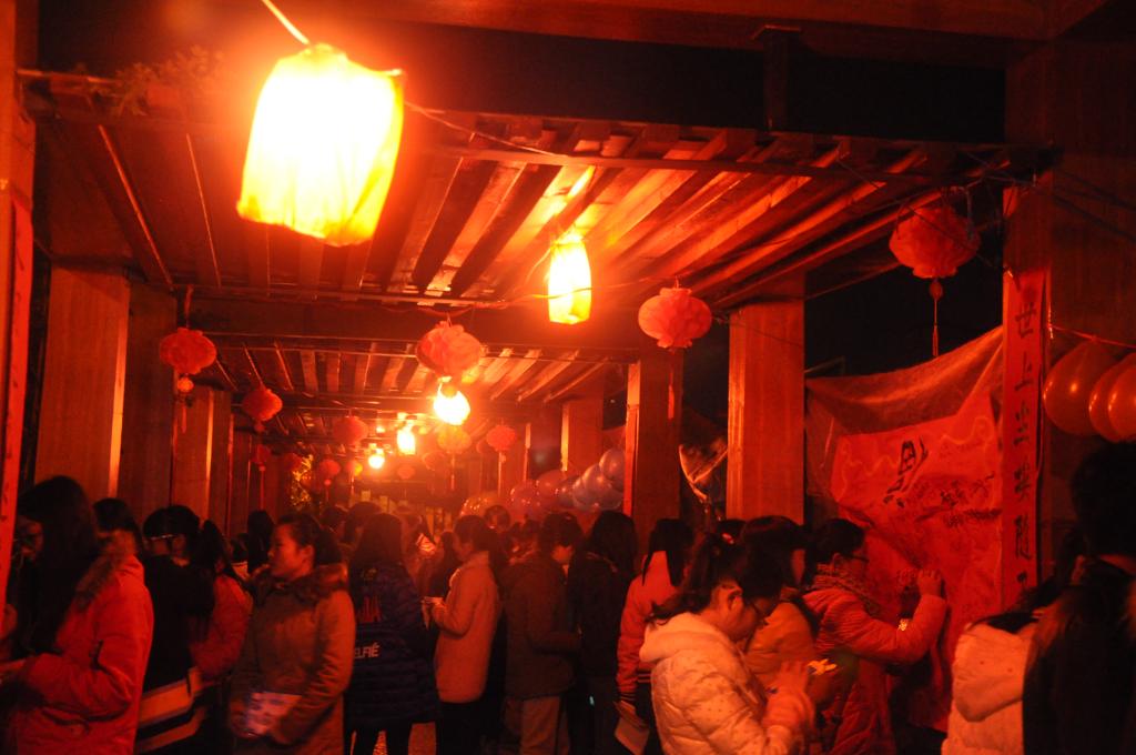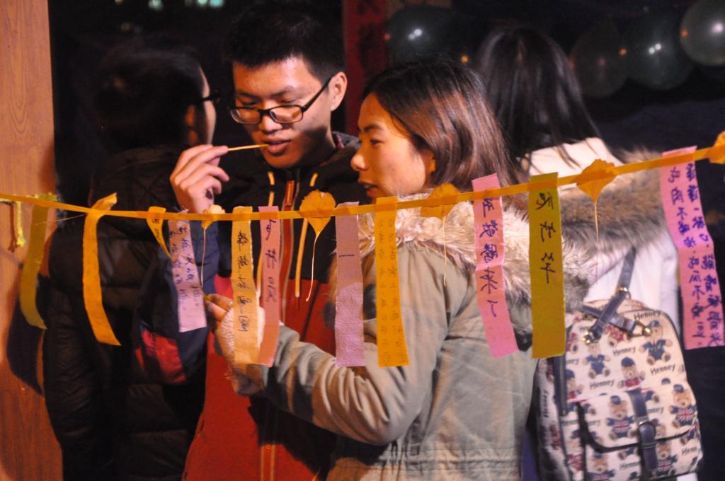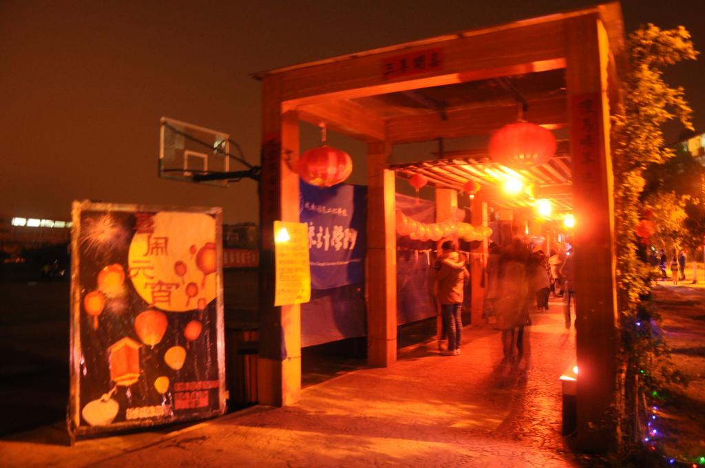 当天上午走廊外的树上已经挂上了红火的灯笼,下午将宿舍楼外的走廊用对联,灯笼,彩灯,气球等烘托出浓郁的节日气氛,到了晚上彩灯光彩夺目,自制的灯笼也散发着华丽的色彩,还有喜庆的歌曲让大家感受着喜悦。热气腾腾的汤圆也吊足了现场参观者的胃口,接近两百条的灯谜吸引了大量学生驻足,而精致的现场装扮也让许多的参观者拿出手机拍照留念,活动最后的戳气球抽奖券又将活动推向了高潮,许多气球几乎同时被戳破就像鞭炮一样震耳。