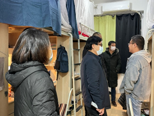 走访过程中,院长李勇语重心长地叮嘱同学们,目前疫情形势依然严峻复杂,坚持就是胜利,希望同学们继续严格遵守学校各项疫情防控措施,时刻关注疫情变化,做好必要防护;按时完成校园健康打卡,如有身体不适,一定要及时上报;积极配合学校疫情防控工作,主动进行核酸检测,落实防控措施;注意宿舍卫生,勤通风、勤消毒;非必要不离校,若请假离校,要严格执行请假制度。此外,院长李勇还提到在学习专业知识的同时,要充分利用业余时间加强锻炼,保持良好的睡眠,注意饮食卫生和食品安全;对同学们在疫情期间的学习生活提出了一系列积极的建议,希望同学们在疫情封校期间保证身心健康,保持积极向上的状态,认真学习,充实地度过疫情防控期间的校园文化生活。同学们纷纷表示,自己会严格遵守学院疫情防控规定,积极学习、加强锻炼,不断提高个人综合素养,向着自己的目标奋勇前进。