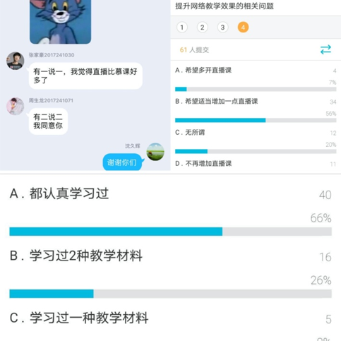 (图1 同学们对直播授课的效果较为满意)