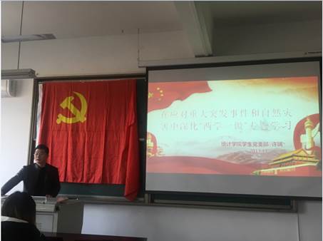 学院教工党支部及学生党支部分别于11月23日和11月26日召开支部大会,集中学习《中共四川省委组织部关于印发<关于在应对重大突发事件和自然灾害中深化“两学一做”学习教育的意见>的通知》(川组通〔2017〕52号)和学校党委关于转发《关于在应对重大突发事件和自然灾害中深化“两学一做”学习教育的意见》的通知精神。学院党总支书记孙克常和学生党支部书记许瑞分别为支部党员做了“在应对重大突发事件和自然灾害中深化‘两学一做’专题学习”报告。