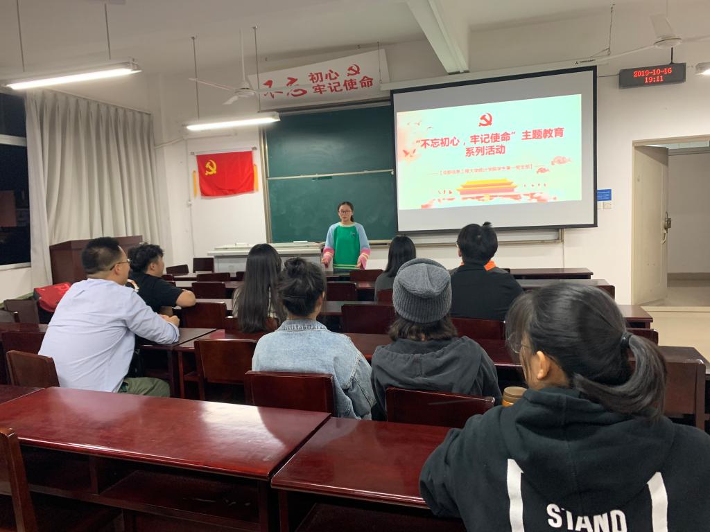 10月16日下午,Betway体育西汉姆联学生一支部在龙泉校区二教2409教室开展“不忘初心、牢记使命”主题教育学习,一支部全体党员参加学习,会议由一支部组织委员李诗航主持。