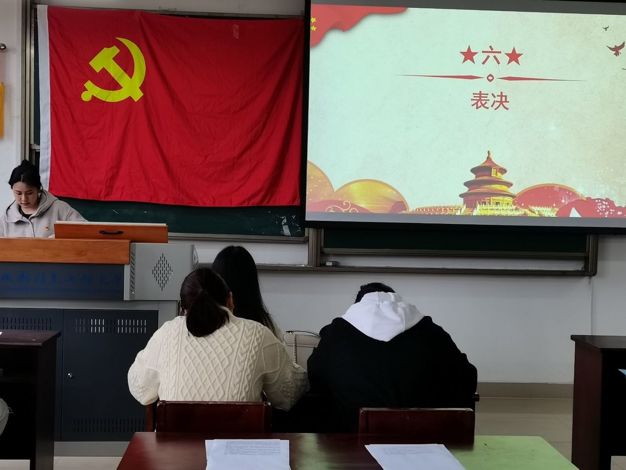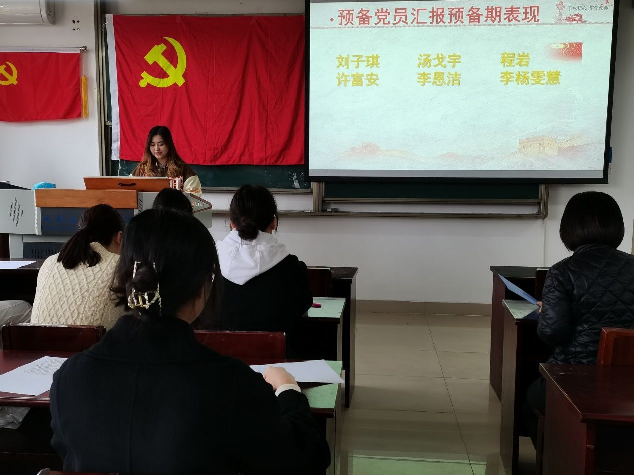 最后,支部书记熊小丽老师宣读支部大会决议,并对顺利通过转正审议的6名党员同志提出要求和寄予希望,希望他们在日后的工作、学习、生活中求真务实,积极主动履行党员义务,切勿“假、大、空”,坚持加强党性修养,不管身在哪个地方,都要坚持初心、担负使命!