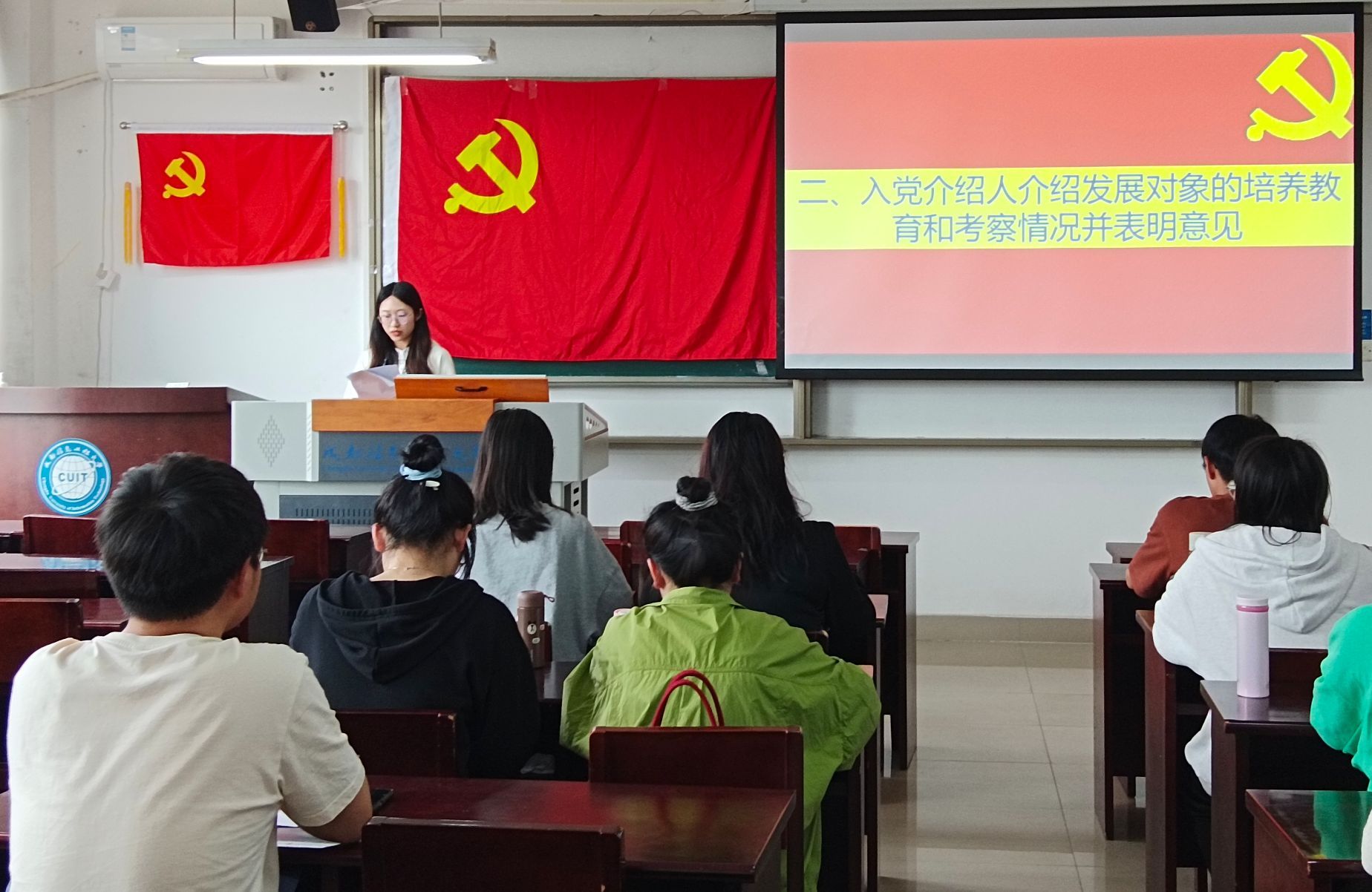大会第二项,入党介绍人介绍发展对象的情况并表明意见。邹魏霞等同志分别介绍对吴诗雨等13名同志的现实表现和培养情况,并对他们能否入党表明自己的意见和态度。