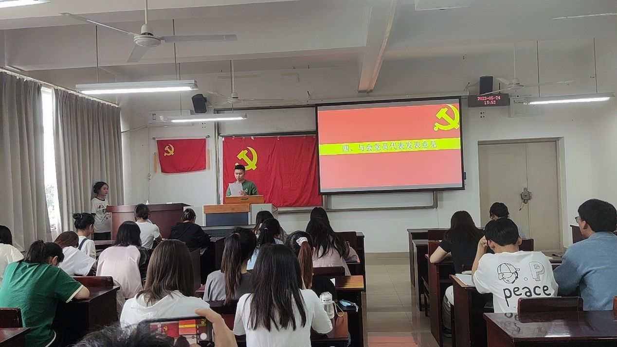会议第二项,按照入党程序,由入党介绍人冯鑫等同志发表对吴思雨等26名预备当党员的培养及考察情况,并表达其意见。