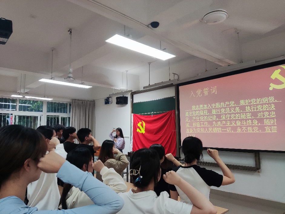 最后,所有预备党员面对党旗进行入党宣誓,谨记誓词,脚踏实地,在自我发展和服务他人与社会中踔厉前行!