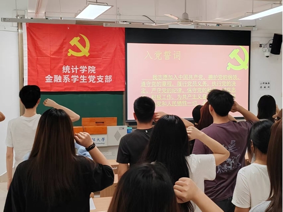 最后,全体党员与预备党员对着党旗进行入党宣誓。誓言铮铮,信念永存,希望他们能够牢记誓词,脚踏实地,严于律己,不忘初心。