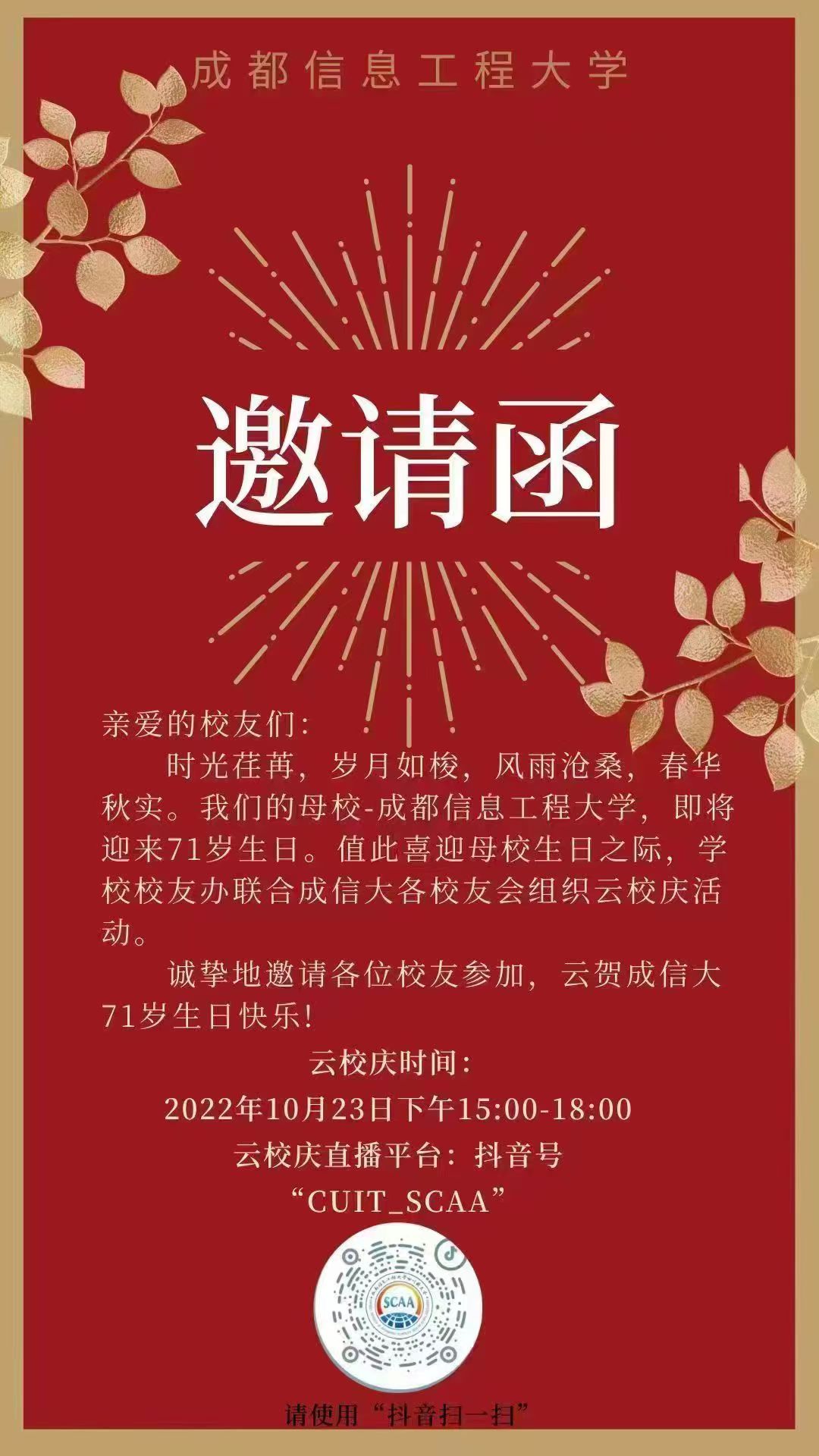 云贺成信大71岁生日邀请函