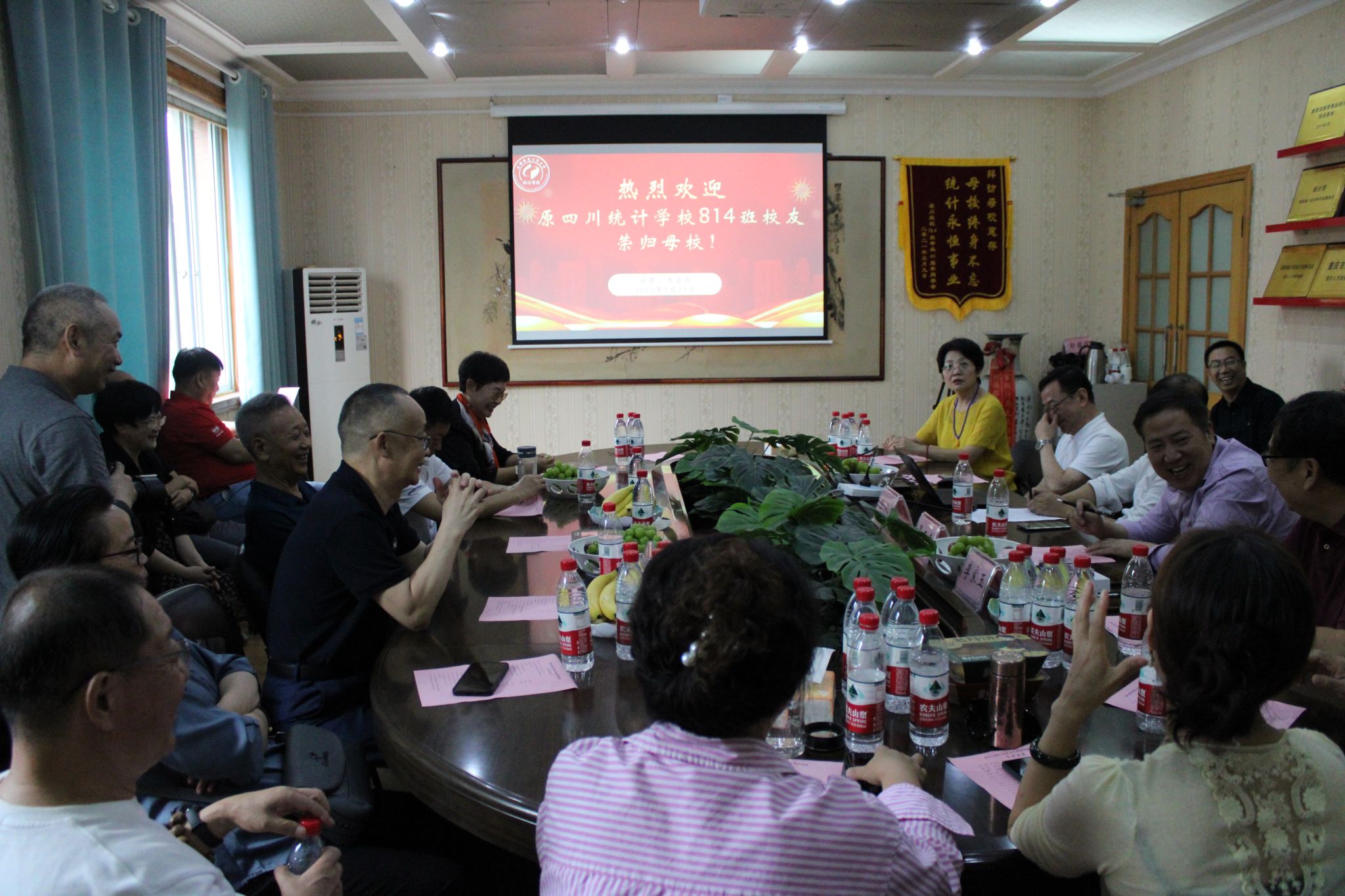 9月23日上午,原四川统计学校814班20余名校友在毕业40周年之际荣归母校并开展座谈交流会,原四川统计学校副校长钟福明,学校校友办副主任晏正春,Betway体育西汉姆联分党委书记金明,Betway体育西汉姆联分工会主席余心蓬及学院部分教职工出席座谈会。会议由Betway体育西汉姆联五级职员李家玉主持。